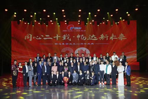 下午17时,庆典活动在激昂的集团短视频中开启,瞬间将现场带入河北畅达集团二十年砥砺奋进的回忆长河。集团党委书记、董事长王贵玉在庆典上发表讲话。王贵玉董事长首先向二十年来与集团风雨同舟的员工、合作伙伴及各界朋友表示衷心感谢。他指出,二十年是畅达从无到有、由小到大的奋斗史诗。历经艰辛坎坷,凭借全体员工的坚韧不拔与锐意进取,集团已从最初的小型贸易公司,发展成为涵盖文旅产业、绿色印刷、生物科技、融资担保等领域的综合性企业集团。他强调,创新是畅达持续发展的核心动力。二十年来,集团在产业调整、技术研发和管理模式上不断突破,在市场竞争中稳步前行。同时,集团始终坚持“健康、快乐、和谐、共赢”的价值理念,积极履行社会责任,荣获国家及省市级荣誉200多项。面向未来,王贵玉表示,二十年是里程碑,更是新起点。畅达将坚守创业初心,深化合作共赢,构建与员工、客户及社会各界的命运共同体,以更加开放的姿态整合资源,共创发展新篇章。最后,他号召全体同仁以二十周年为契机,凝聚智慧与力量,共同谱写畅达下一个更加辉煌的二十年。